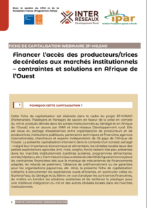 Les achats institutionnels offrent un potentiel structurant pour relier politiques publiques, marchés locaux et agriculture familiale. À travers le projet 3P-MILSAO, mis en oeuvre par IPAR et Inter-réseaux, des analyses et retours d’expériences mettent en évidence les leviers, contraintes et choix opérationnels qui conditionnent l’intégration du mil et d’autres productions locales dans la commande publique en Afrique de l’Ouest. Ces enseignements éclairent les débats sur le rôle des marchés institutionnels dans la souveraineté alimentaire.