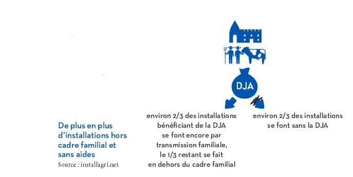 Si nous prenons le cas de la France, il existe un dispositif financier d’aide à l’installation permettant de bénéficier d’une dotation initiale (la DJA) associée à des dispositifs de bonification des prêts à l’installation et différentes formes de subventions à l’investissement. Ces dispositifs sont toutefois relativement inadaptés aux installations de personnes extérieures au cadre agricole, pourtant de plus en plus nombreuses.