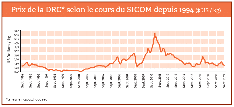 Isaac Bosomtwe – IB (ROAA) : Malgré l’accès difficile à la terre, le nombre d’hectares plantés augmente d’année en année : 6 697 ha d’hévéas ont été plantés en 2014, puis 7 054 ha en 2015, 8 930 ha en 2016 et 14 833 ha en 2018. Le prix du caoutchouc varie en fonction des prix du marché mondial (avec comme référence le cours du SICOM), le taux de change local et la teneur en caoutchouc sec (DRC). Si personne ne peut influencer les deux premiers, la DRC relève de la société de transformation.