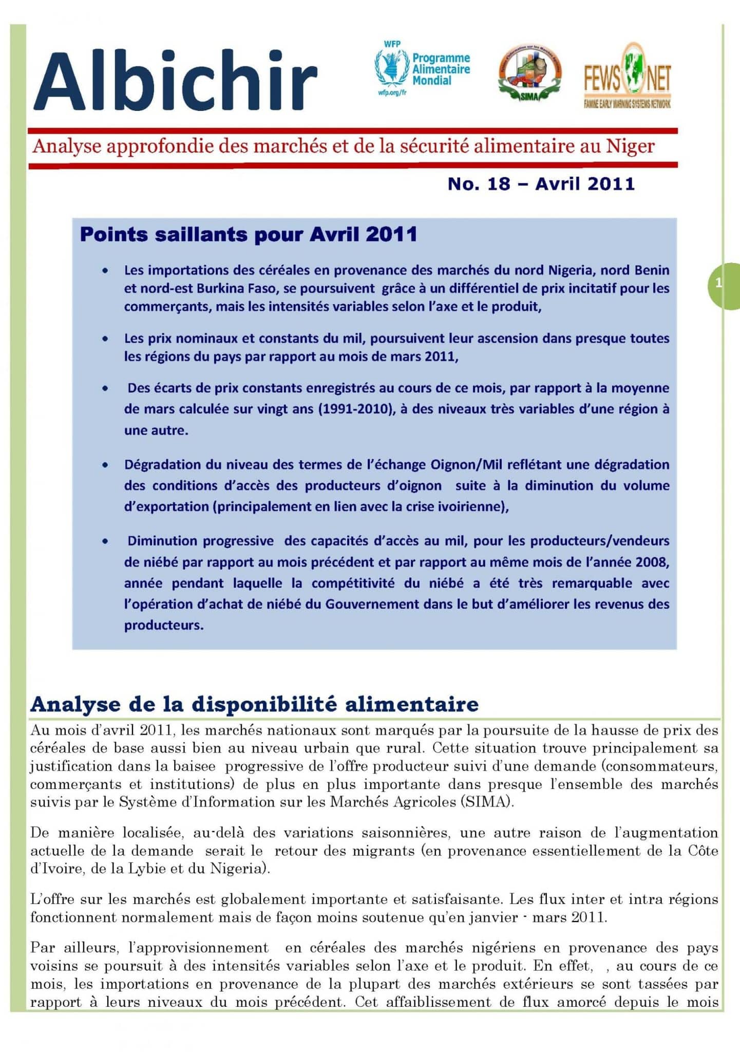 - Les prix nominaux et constants du mil, poursuivent leur ascension dans presque toutes les régions du pays par rapport au mois de mars 2011,