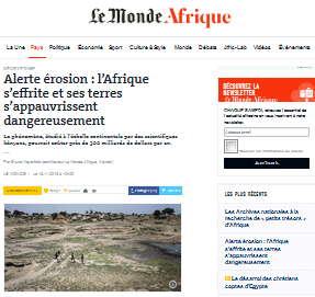 Les deux tiers des terres dites productives du continent sont aujourd’hui déjà dégradées selon les chiffres rapportés par le PNUE, alors même que la population devrait doubler d’ici 2050 et que le continent a besoin en urgence d’un secteur agricole performant. Le phénomène d’érosion, étudié à l’échelle continentale par des scientifiques kényans, pourrait coûter près de 300 milliards de dollars par an du fait de l’inaction face au phénomène de l’érosion et de la dégradation des sols.