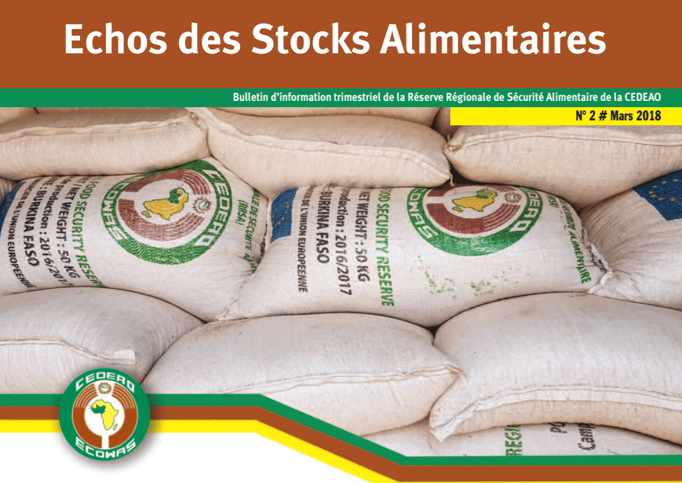 Dans ce second numéro du Bulletin d’information trimestriel de la Réserve Régionale de Sécurité Alimentaire de la CEDEAO, les principaux éléments abordés sont relatifs au suivi des stocks de la Réserve Régionale; à la réception de nouveaux stocks par la composante physique de la Réserve Régionale; à la contribution de la Commission de la CEDEAO dans la cadre de la lutte contre l’insécurité alimentaire et nutritionnelle dans les Etats du Nord Est du Nigeria; au rôle des structures nationales de stockage, du secteur privé et des OP dans l’approvisionnement et le stockage de la composante physique de la Réserve Régionale; à la poursuite du renforcement des pays dans le peuplement de la plateforme du système d’information agricole régional (ECOAGRIS); et au point du Monitoring Orienté vers les Résultats concernant la mise en œuvre du projet d’appui à la Réserve Régionale,.