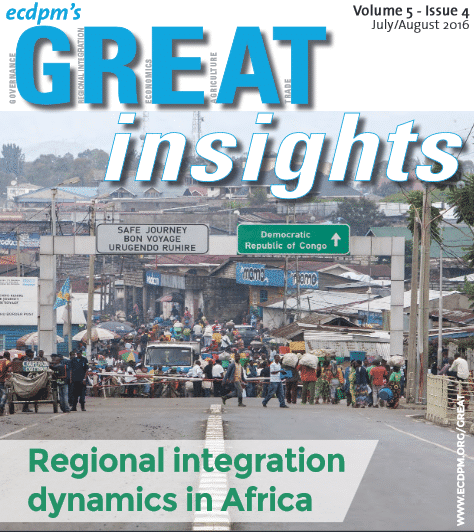 Regional integration holds many promises, generates many fears, and results in many disappointments. This is because levels of ambitions often differ among regional partners and among domestic actors, and do not match implementation realities. These dimensions are traditionally overlooked when dealing with regional integration, where the focus is generally on institutional settings, policy design and technical capacities. To remedy such a short-sighted approach, it is thus necessary to pay greater attention to the various dynamics that shape and affect regional integration. This issue of GREAT Insights brings together a number of insights and perspectives on some of these characteristics and dimensions that shape various regional integration initiatives in Africa.