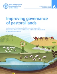 The Technical Guide on Pastoralism (152 p.) builds on a number of initiatives and studies from recent years that have shone a light on pastoral governance and land tenure: on the inherent challenges pastoralists face, the shortcomings of governments in securing pastoral tenure, and the emerging examples of success and progress from around the world. This Technical Guide provides solutions to securing pastoral governance and tenure without undermining the inherent, necessary complexity of customary arrangements. The solutions are within a rapidly changing context, in which traditional practices and crucial patterns of livestock mobility are transforming. The technical guide on Improving the governance of pastoral lands is designed for several audiences including government and non-government actors. While most readers will have a basic knowledge of pastoralism, many will be unfamiliar with the great diversity of pastoralist systems and cultures throughout the world. The guide addresses those who recognize the importance of securing pastoral land tenure and who are looking for practical guidance on how to proceed. The guide is, therefore, not an advocacy document, but it provides arguments in Section 1 for securing pastoral tenure that can be used by different actors to strengthen their justification for such work. While these guidelines provide practical advice that can be operationalized, further work will be required to translate the current document into more local user-friendly products for pastoral communities.