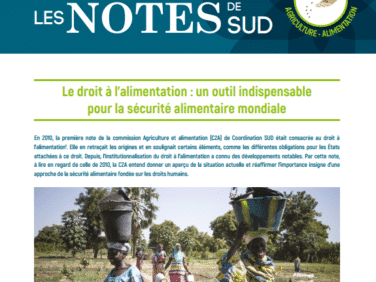 Le 3e numéro des Notes de SUD est consacré au droit à l’alimentation. En 2010, la première note de la commission Agriculture et alimentation (C2A) de Coordination SUD traitait la même thématique. Elle en retraçait les origines et en soulignait certains éléments, comme les différentes obligations pour les États attachées à ce droit. Depuis, l’institutionnalisation du droit à l’alimentation a connu des développements notables. Par cette note, à lire en regard de celle de 2010, la C2A entend donner un aperçu de la situation actuelle et réaffirmer l’importance insigne d’une approche de la sécurité alimentaire fondée sur les droits humains.