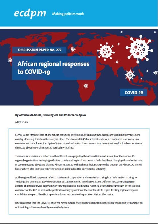 Existing regional response capabilities partially reflect a problem-driven response to the past West African Ebola crisis. One can expect that the COVID-19 crisis will have a similar effect on regional health cooperation, yet its long term impact on African integration more broadly remains to be seen.