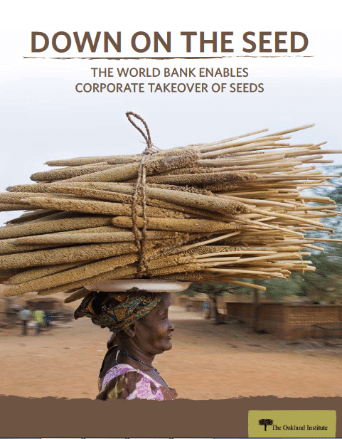 Only six multinationals currently control over two-thirds of the industrial seed sales, and pending agro-industry mergers stand to further consolidate this oligopoly. Further market expansion for these corporations depends on the shrinking of farmer-managed seed systems, which currently provide 80 to 90 percent of the seed supply in developing countries through on-farm seed saving and farmer-to-farmer seed exchange. Down On the Seed, the World Bank Enables Corporate Takeover of Seeds, exposes that while the World Bank claims to promote “smart and balanced policies,” its Enabling the Business of Agriculture index blatantly ignores farmer-managed seed systems. Instead, it reinforces the stranglehold of agrochemical companies and Western nations by pushing for intellectual property rights in agriculture, so that private breeders profiteer from the use of their seeds by farmers. -# Read the full report in english (19 p.) and the summary in french (4 p.) :