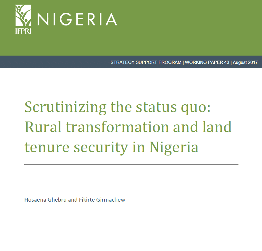 This study examines the drivers of perceived tenure insecurity in Nigeria. The analysis shows that perceived risks of private land dispute are higher for female-headed households, households with lower social/political connectedness, and for land parcels acquired via the traditional/customary system, in contrast to having been purchased. Private tenure risk/insecurity is also higher in communities with vibrant land market and for households that are located close to urban centers, while the opposite is the case in communities with relative ease of land access. On the other hand, collective tenure risk is lower in communities with improved economic status. Finally, signifying the need to account for intra-household dimensions in implementing land reform interventions, results from a more disaggregated analysis show that tenure security is relatively higher on female-managed plots of female-headed households, while the opposite is the case for female-managed plots of male-headed households.