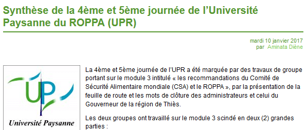 Université Paysanne du ROPPA: Synthèse des 4ème et 5 ème journées et articles de presse